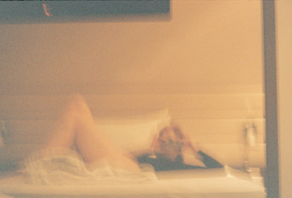 The film repeatedly features analog self-portraits, most of which were taken spontaneously in my kitchen over the last two years. They show a version of me that existed only in that moment. The staging was minimal, the process short —often lasting just a few seconds. And when I sent the film to the lab, I had no idea what to expect. Except that, hopefully, my face would be on it.